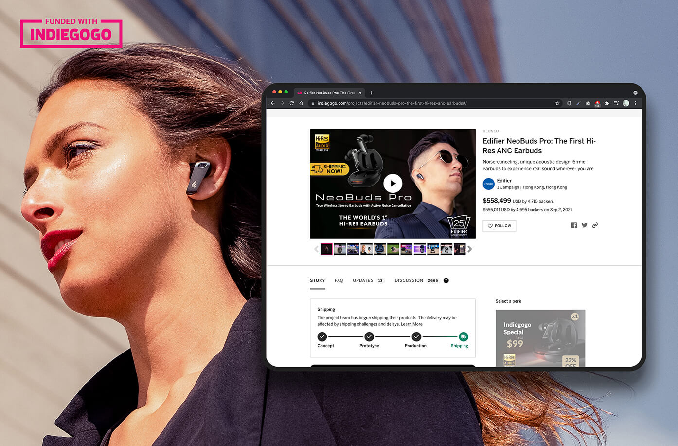 EDIFIER NeoBuds Pro page deems to have become a new role model for general page design on Indiegogo.